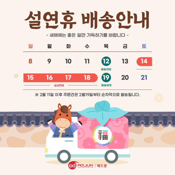 설 휴무 택배는 2월12일 부터 배송이 종료되오니